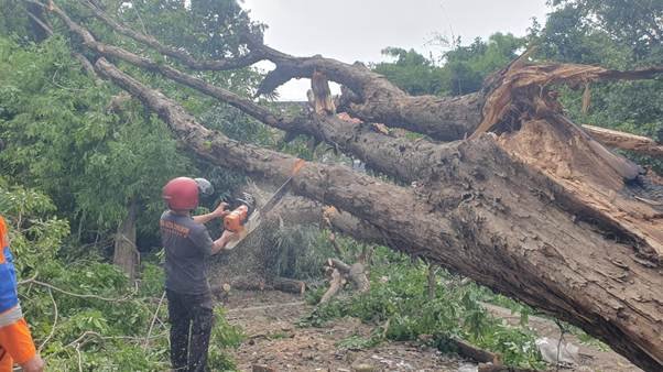 selama kurang lebih empat jam. Seluruh material pohon berhasil dibersihkan dan